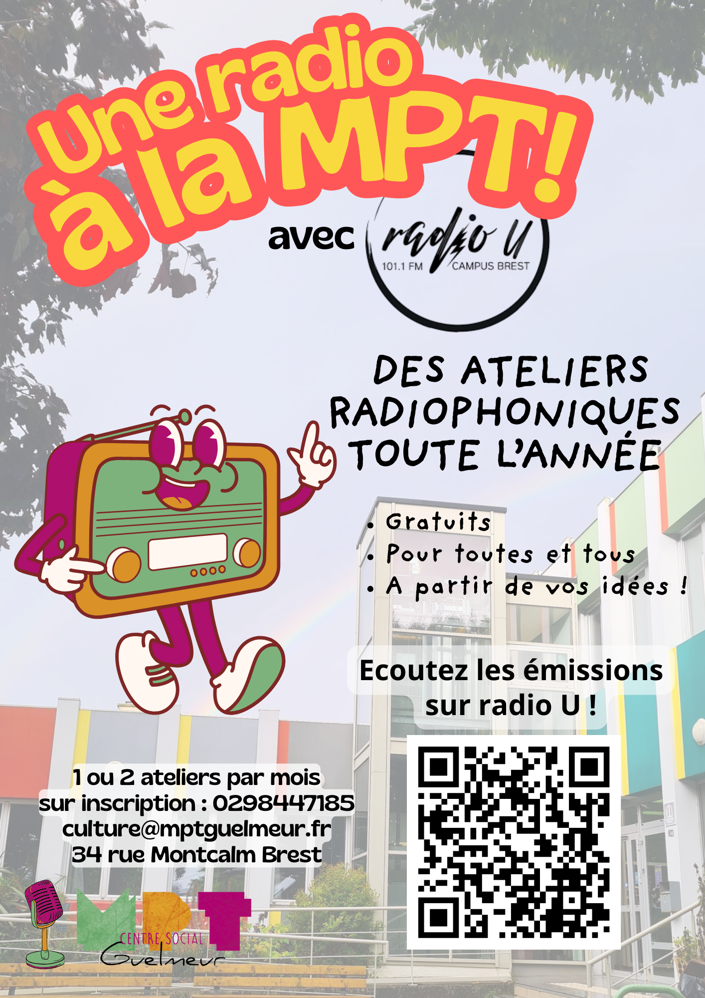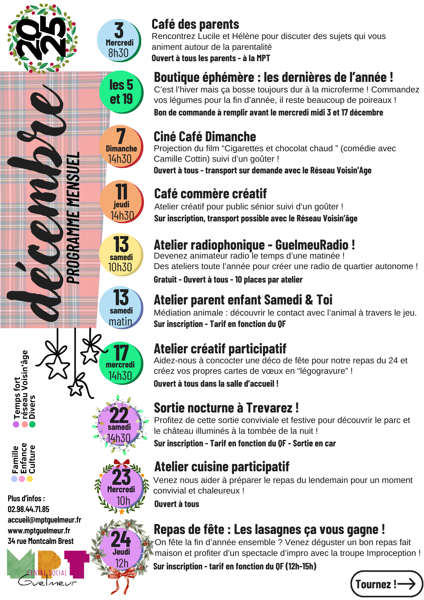 Les professionnel.le.s de la Maison pour tous et les bénévoles vous accueillent dans nos locaux ou « en itinérant » sur les quartiers du Guelmeur, Poul ar Bachet et Forestou. Lorsque vous adhérez à la MPT, vous en acceptez son objet, ses valeurs, ses statuts, et son règlement intérieur.