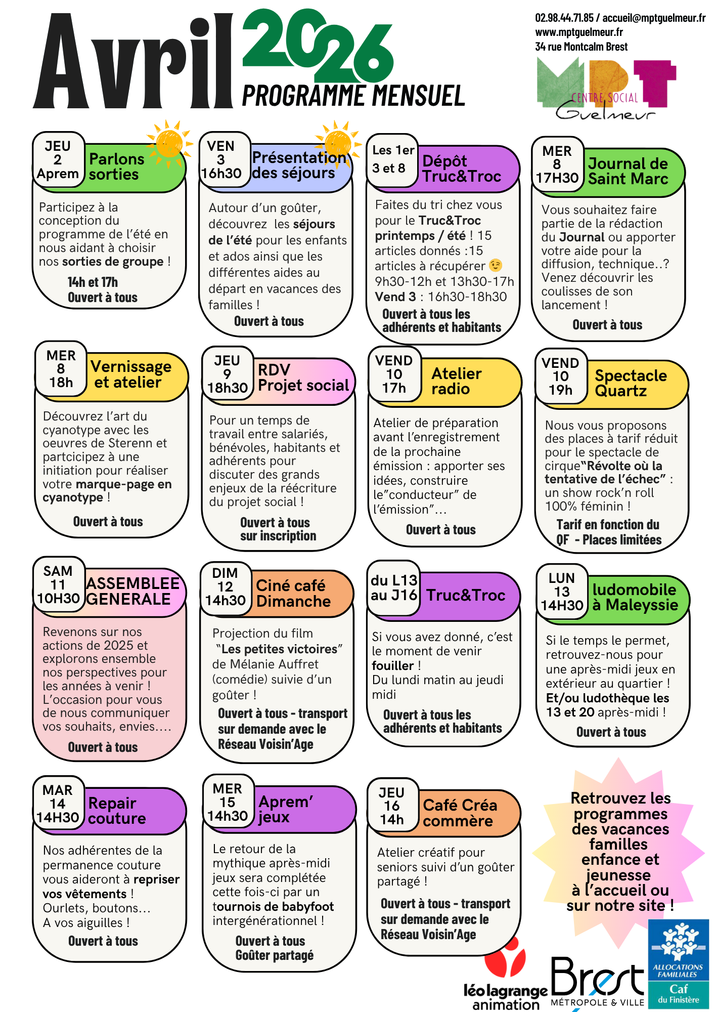 Association d’éducation populaire, la Maison pour Tous – Centre Social du Guelmeur est affiliée à la Fédération Léo Lagrange et agréée Centre Social par la CAF.